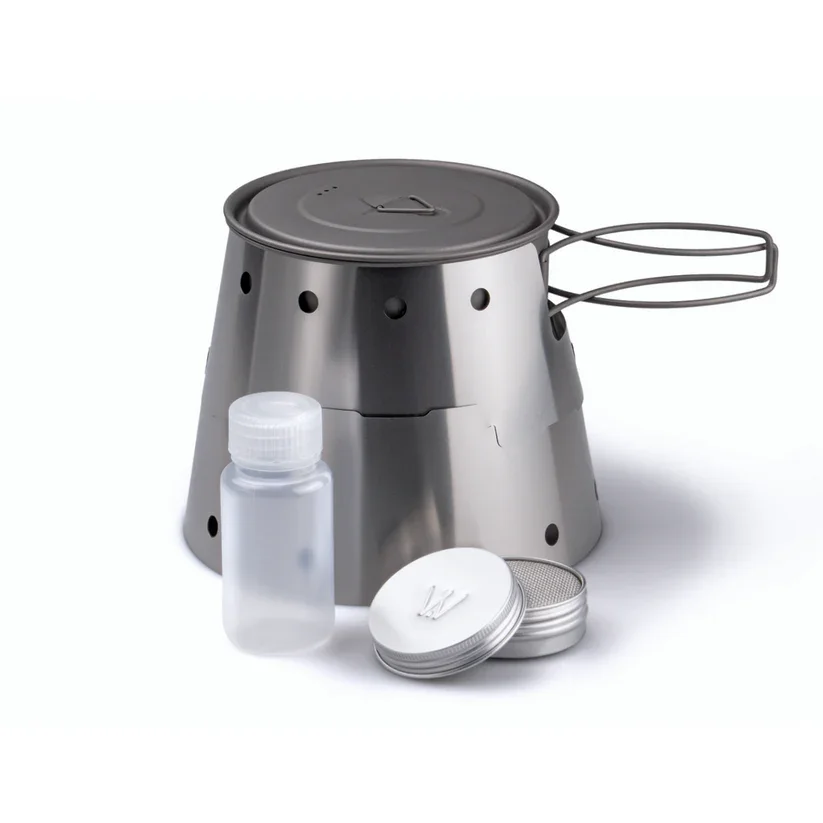 A rugged and versatile hydration and cooking system built for real outdoor use. This all-in-one kit combines a 32 oz stainless steel bottle with a detachable cup and integrated stove setup, giving you both a durable water carrier and a basic cooking solution in one compact package.