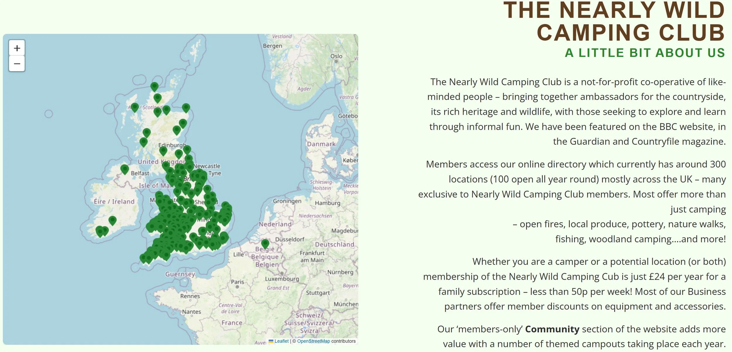 Nearly Wild Camping typically operates through a membership model, giving access to the directory and community information.